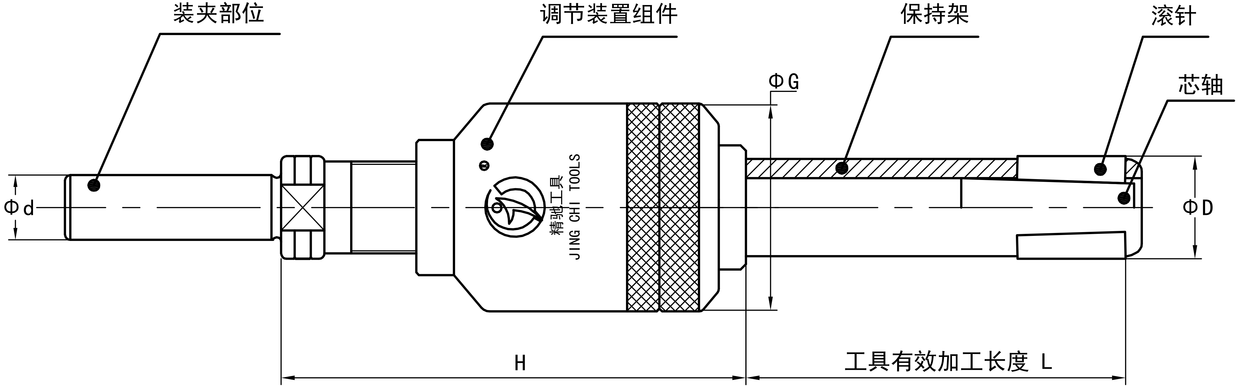 注:孔徑Φ26-68的滾壓刀有效加工長(zhǎng)度從B檔開始柄部標(biāo)配MT3,如需其他型號(hào)規(guī)格需定做。加工孔徑Φ40以上的滾壓刀,由于調(diào)節(jié)組件的外徑比加工孔徑小,可通過(guò)加長(zhǎng)柄部尺寸的方法增加加工長(zhǎng)度。
