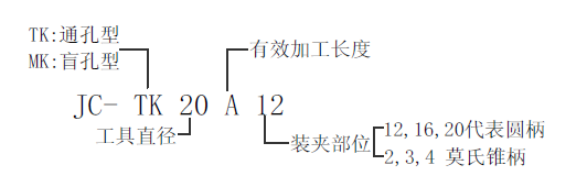 | ΦD | ΦG | 通孔/盲孔 | A | B | C | D | 直柄 | H | 錐柄 | H |